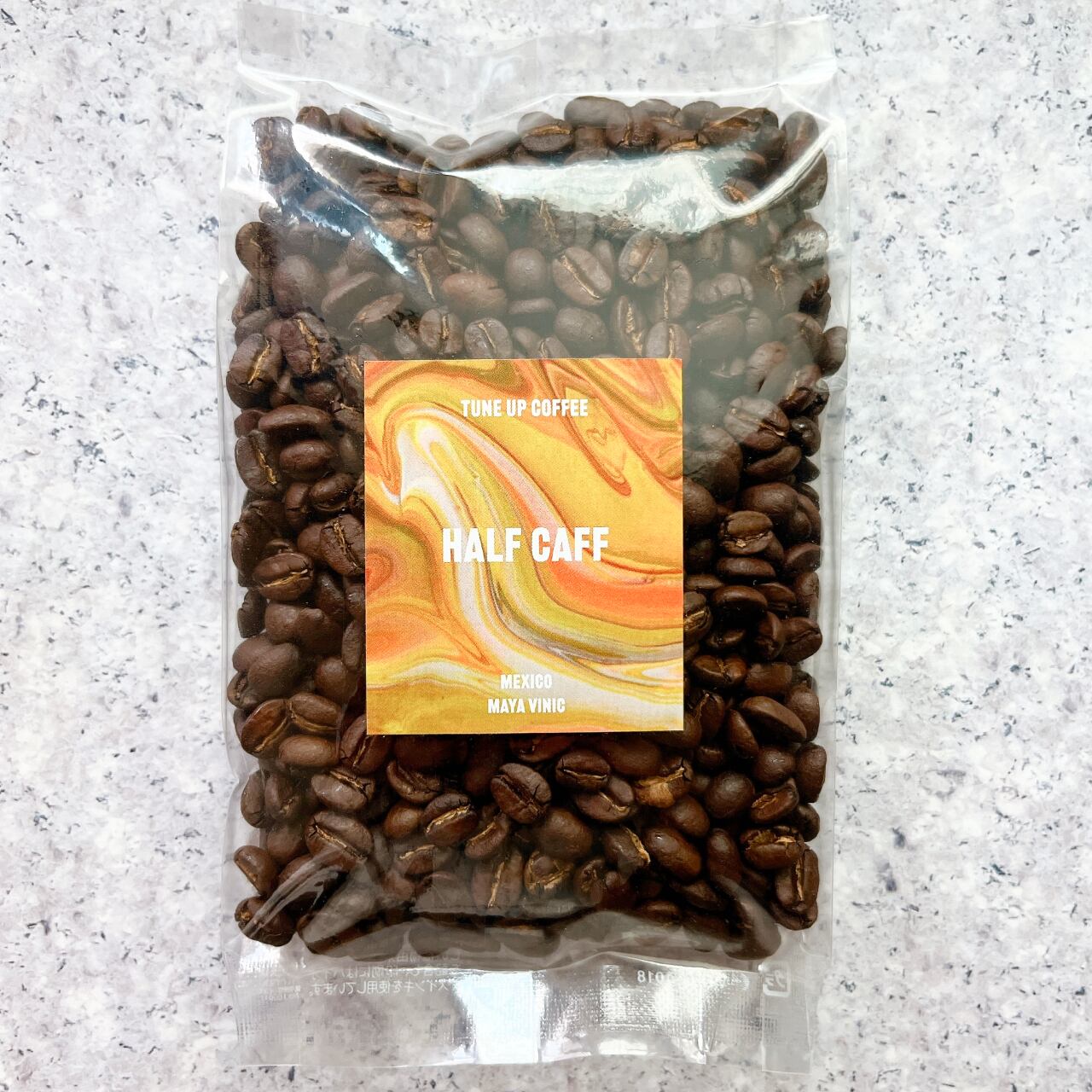 ノンカフェインとフルカフェインを半分づつブレンドしています